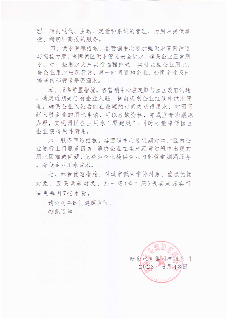 新余水務(wù)集團(tuán)有限公司關(guān)于推進(jìn)營商環(huán)境優(yōu)化升級工作措施的通知