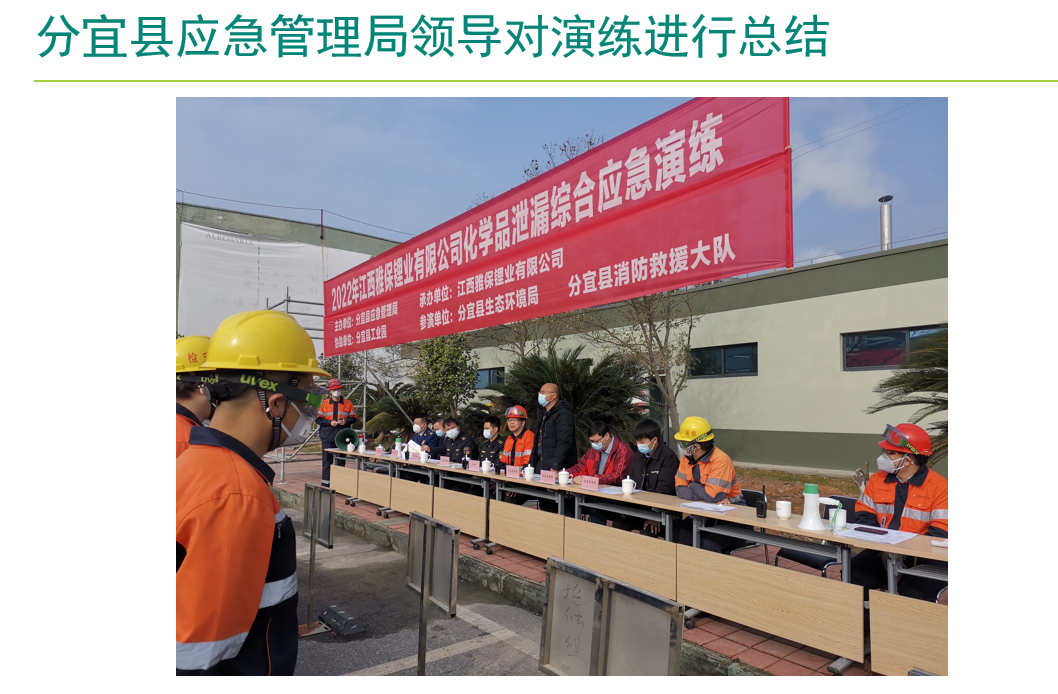 1月11日,新年伊始,為進一步增強企業安全生產意識,全面提升生產安全事故應急救援處置能力,分宜縣在江西雅保鋰業有限公司舉行危險化學品泄漏事故綜合應急演練。此次演練由分宜縣應急管理局主辦,雅保鋰業承辦,縣工業園區、消防救援大隊、生態環境局等部門共計四十余人參加演練。