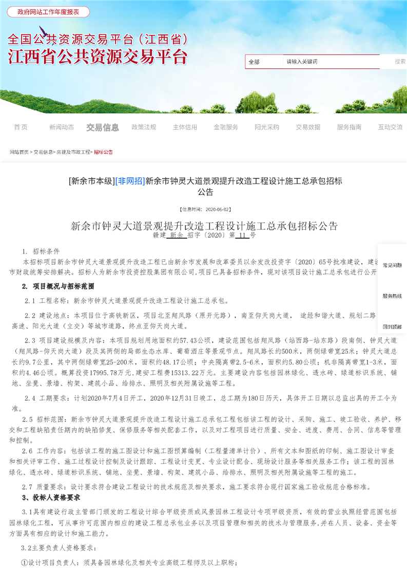 新余市鐘靈大道景觀提升改造工程設計施工總承包招標公告