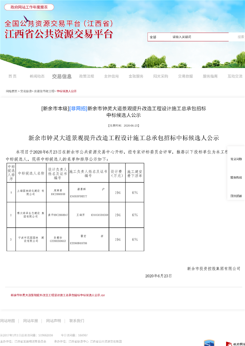 新余市鐘靈大道景觀提升改造工程設(shè)計(jì)施工總承包招標(biāo)中標(biāo)候選人公示