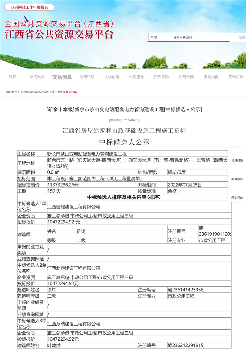 新余市茶山變電站配套電力管溝建設(shè)工程[中標(biāo)候選人公示]