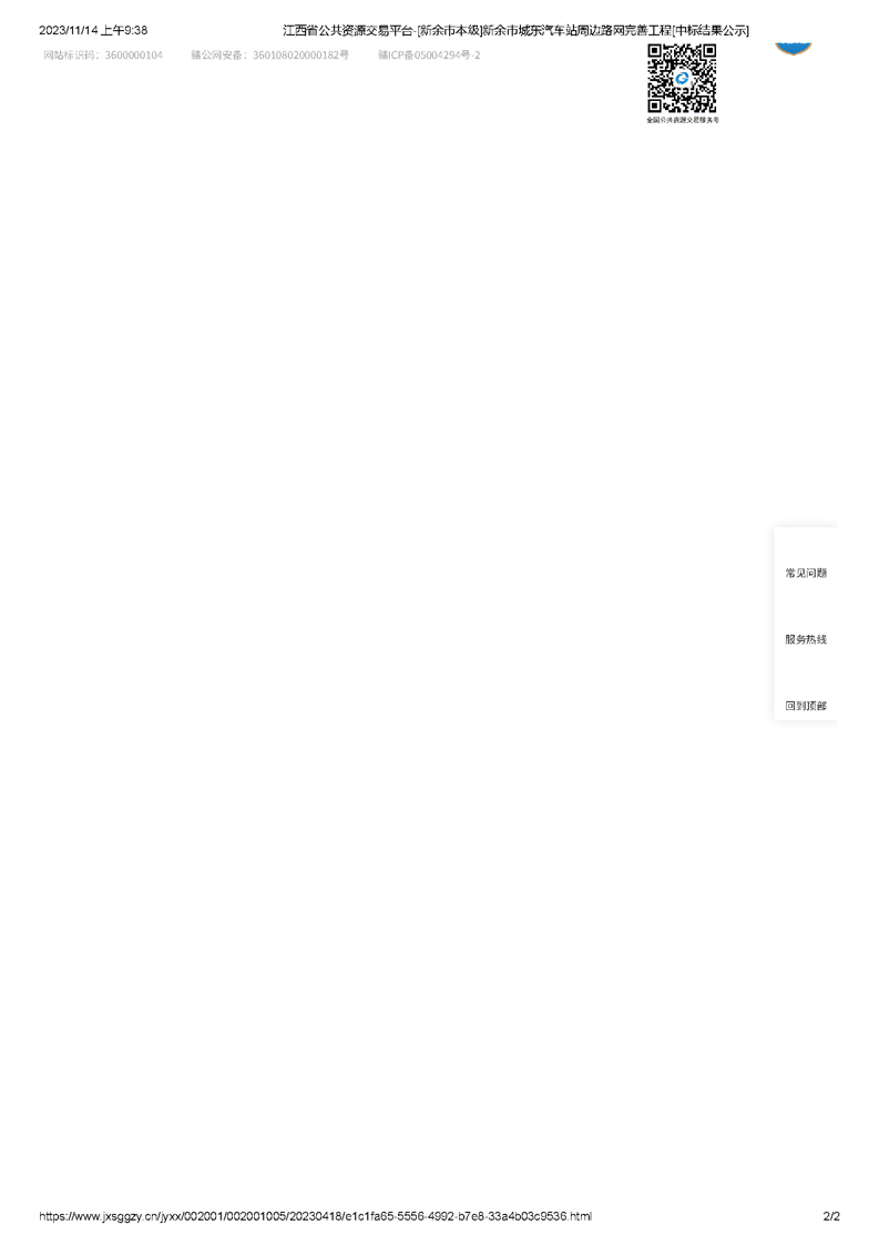 新余市城東汽車站周邊路網完善工程[中標結果公示]