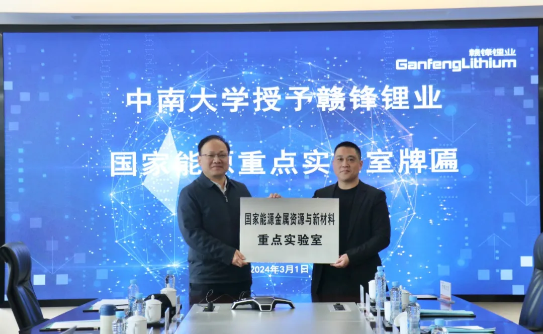 近日,從江西贛鋒鋰業集團股份有限公司獲悉,公司收到了中南大學共建重點實驗室牌匾,標志著贛鋒鋰業與中南大學正式獲批共建國家能源金屬資源與新材料重點實驗室。