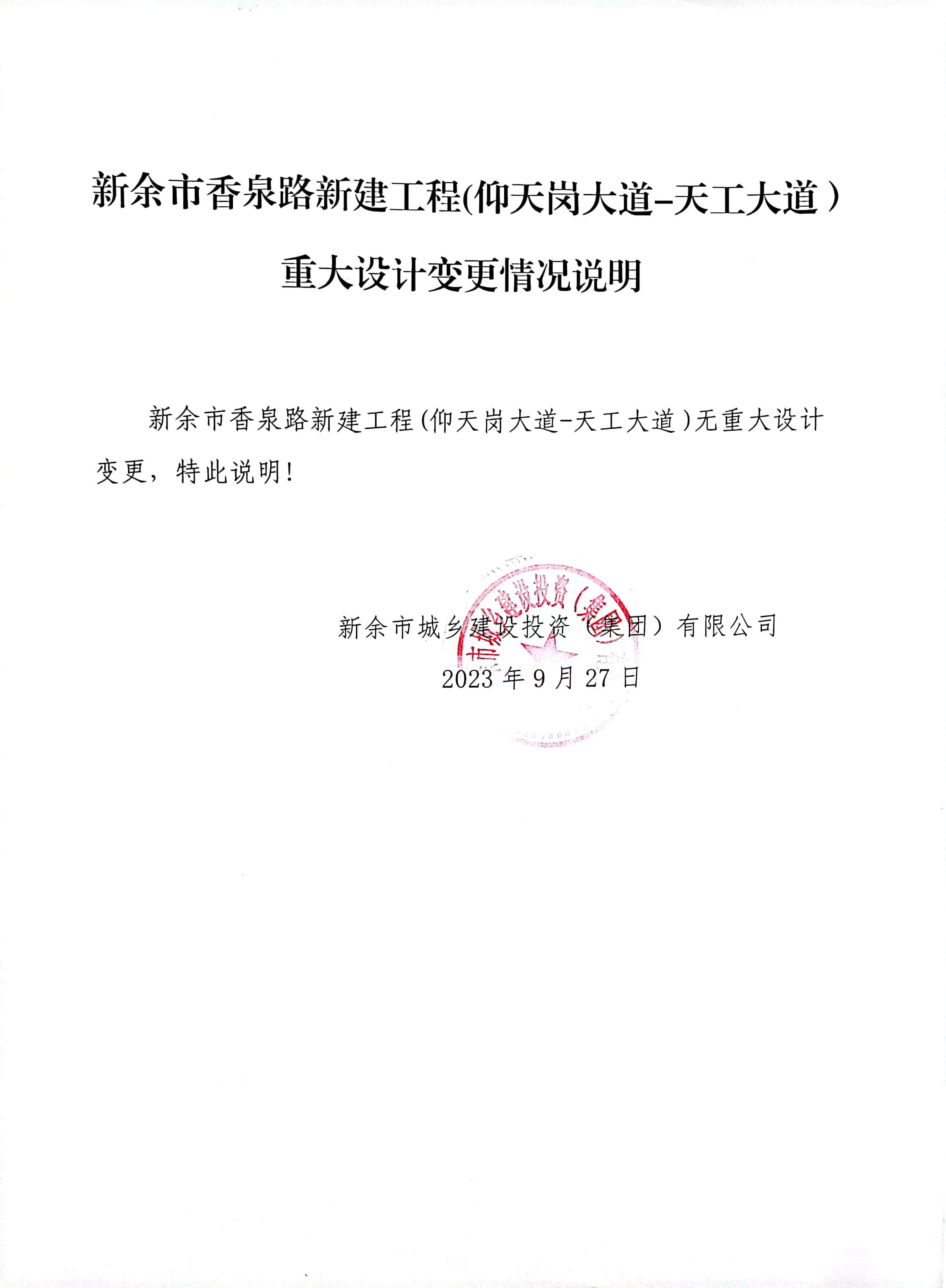 新余市香泉路新建工程(仰天崗大道-天工大道)重大設(shè)計變更的情況說明
