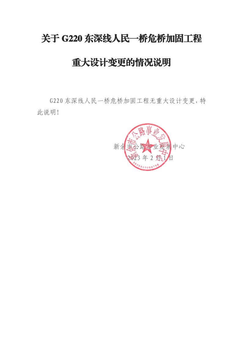 關于G220東深線人民一橋危橋加固工程重大設計變更的情況說明