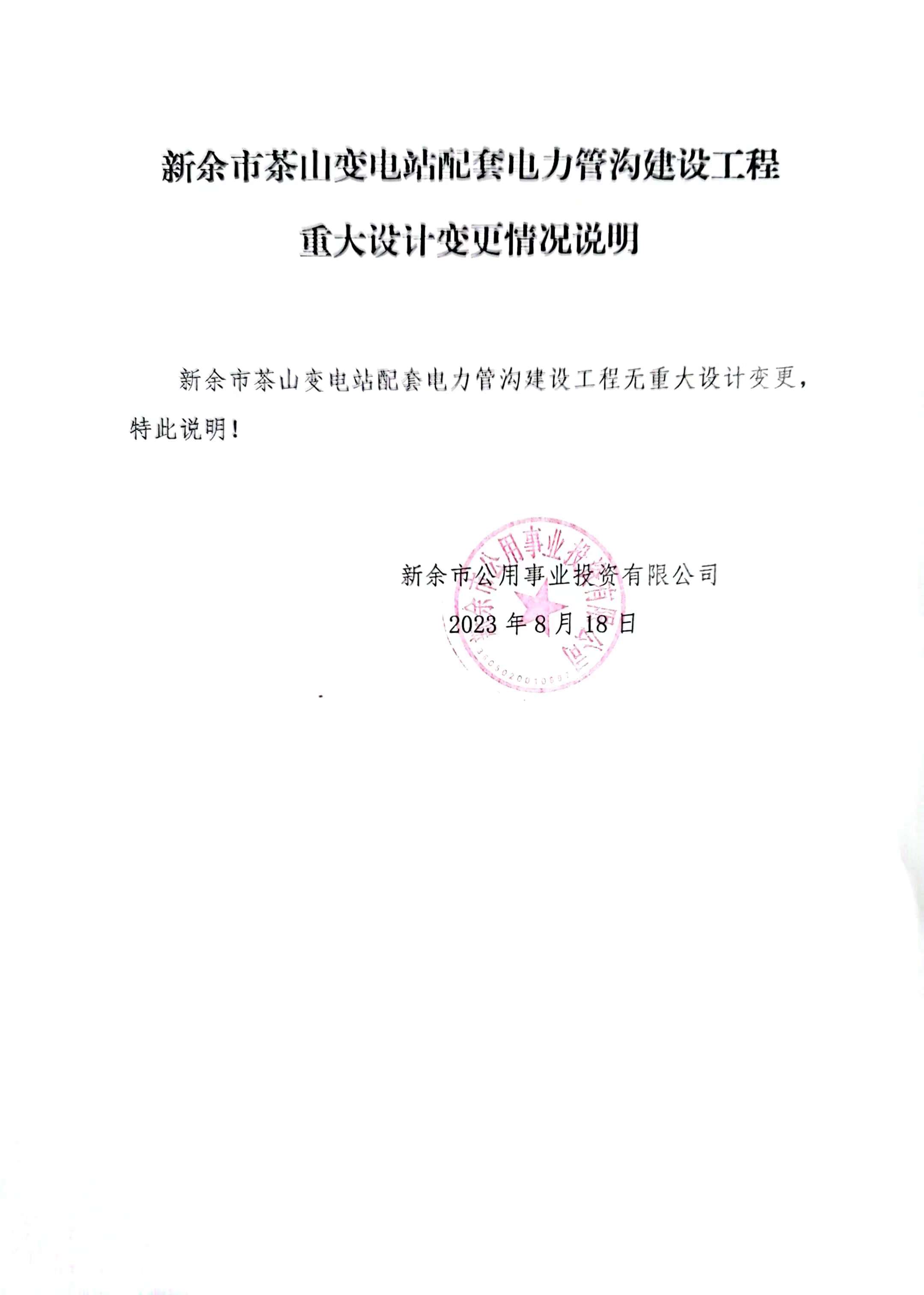 新余市茶山變電站配套電力管溝建設工程重大設計變更情況說明