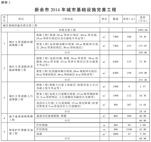附件:1.新余市2014年市本級政府投資城建交通建設項目