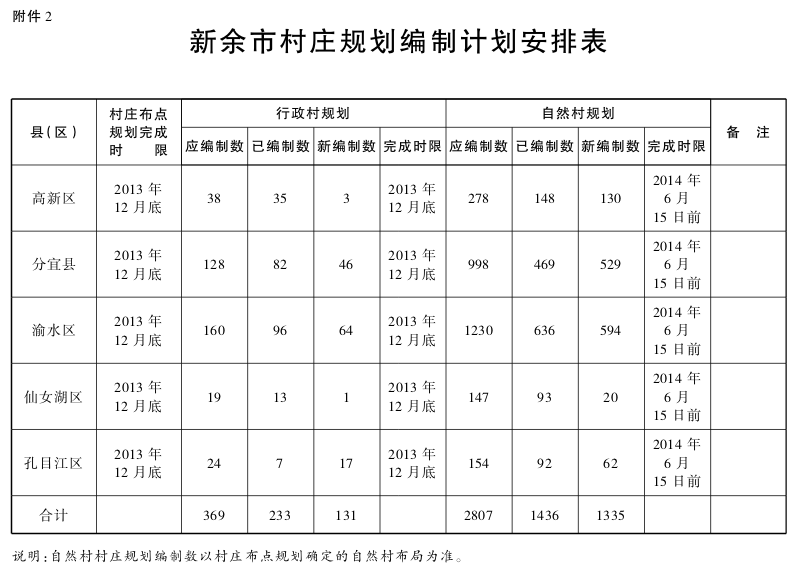 2.新余市村莊規劃編制計劃安排表