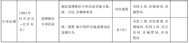 2.集中清理整治。各縣(區)按照市統一部署,集中組織實施。重點清理整治違法買賣集體土地、城鎮居民在農村購地建房、農民建房一戶多宅以及其他違法占用集體土地等違法違規行為,鼓勵拆舊建新,逐步消除"一戶多宅"的現象,切實規范全市村鎮住房建設管理秩序。
