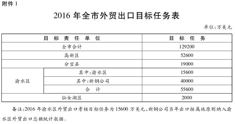 新余市人民政府關于下達2016年全市開放型經濟主要目標任務的通知