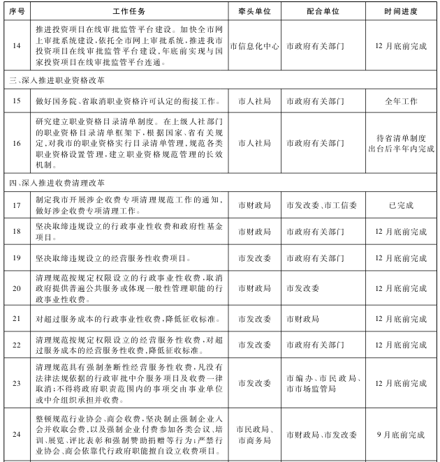 3進一步規范行政審批行為和改進行政審批工作。嚴格落實國務院、省政府和市規范行政審批行為改進行政審批工作的有關法規、文件要求,優化行政審批流程,壓縮行政審批時間,規范行政審批行為,約束自由裁量權,切實解決“審批難”問題。(牽頭單位:市審改辦;配合單位:市行管委、市政府法制辦等部門)