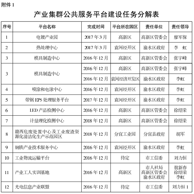 (二)抓緊建設一批產業集群公共服務平臺(見附件1)。