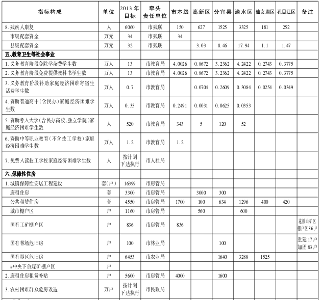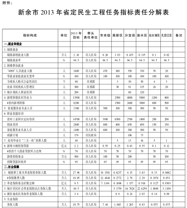 附件:新余市2013年省定民生工程任務指標責任分解表