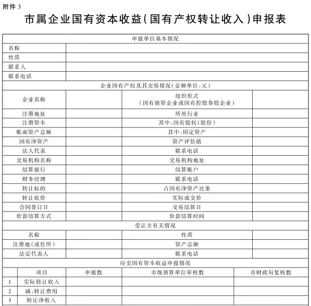 3.市屬企業國有資本收益(國有產<股權>轉讓收入)申報表