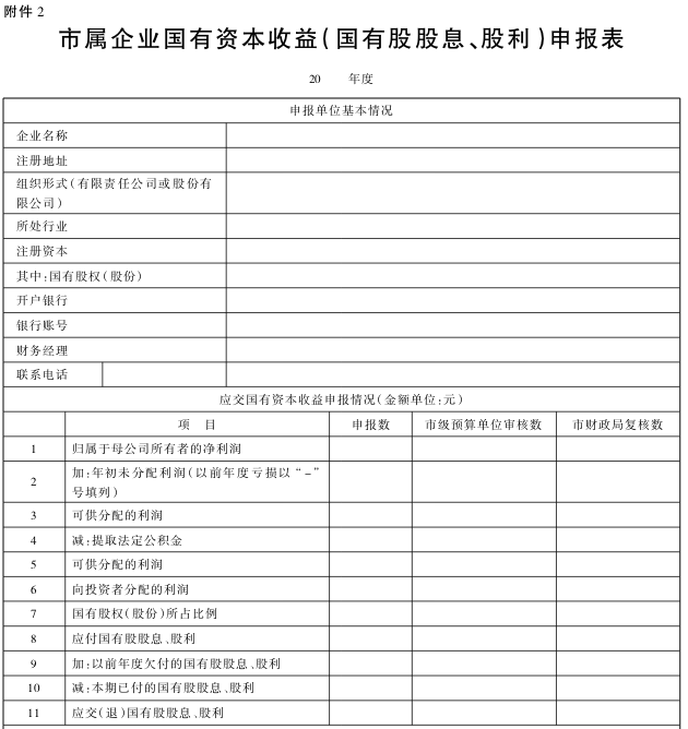 2.市屬企業國有資本收益(國有股股利<股息>)申報表