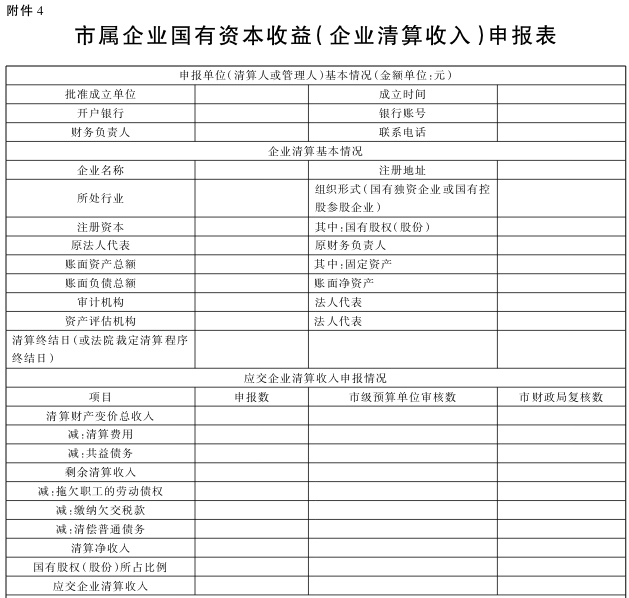 4.市屬企業國有資本收益(企業清算收入)申報表