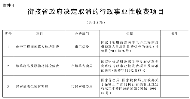 4.銜接省政府決定取消的行政事業(yè)性收費項目(3項)