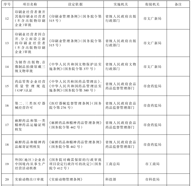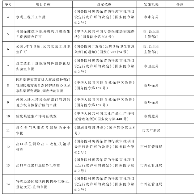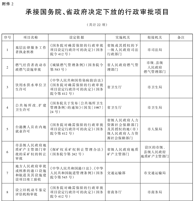 2.承接國務院、省政府決定下放的行政審批項目(22項)