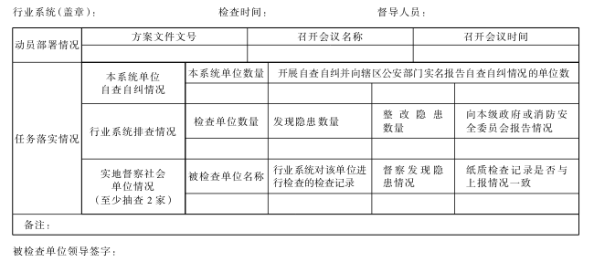 2、消防安全大排查大整治督察情況登記表(行業系統)
