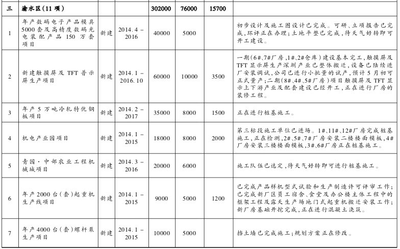 2014年,我市第一批市重點建設項目共安排52個,總投資169億元,年度計劃投資40億元,其中新建項目26個,續建項目26個。據統計,截至4月底,第一批52個項目累計完成投資1495億元,占年度計劃的37%,超時序進度37個百分點;45個項目在建,7個項目未開(復)工。4月份當月完成投資473億元,2個新建項目開工(高新區長鴻公司新建磁性材料器件、渝水區袁河綠色低碳數字化平臺項目)。
