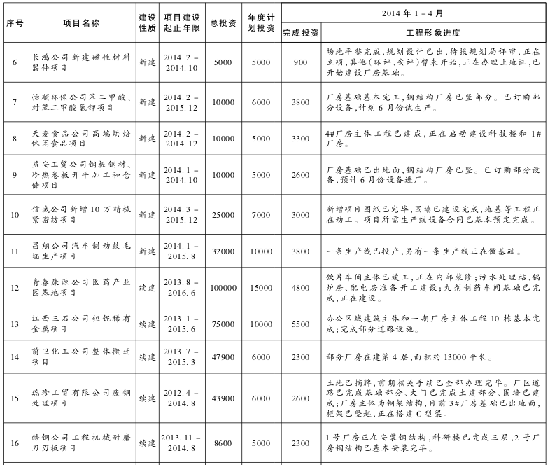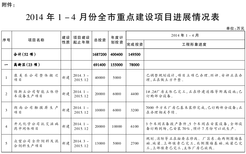 附件:2014年1-4月份全市重點建設項目進展情況表