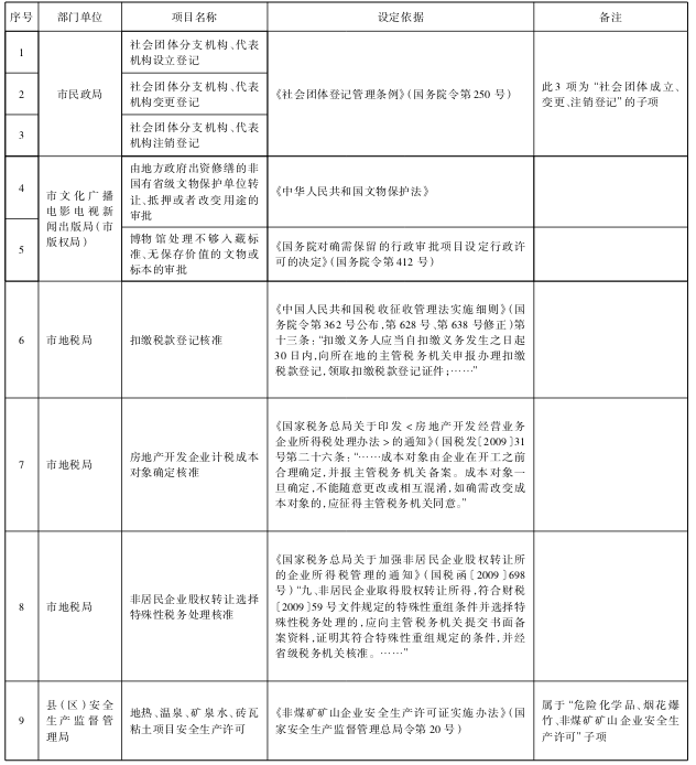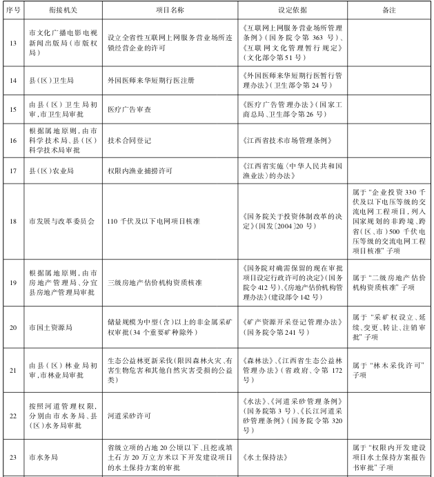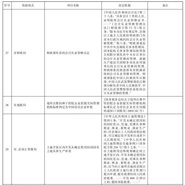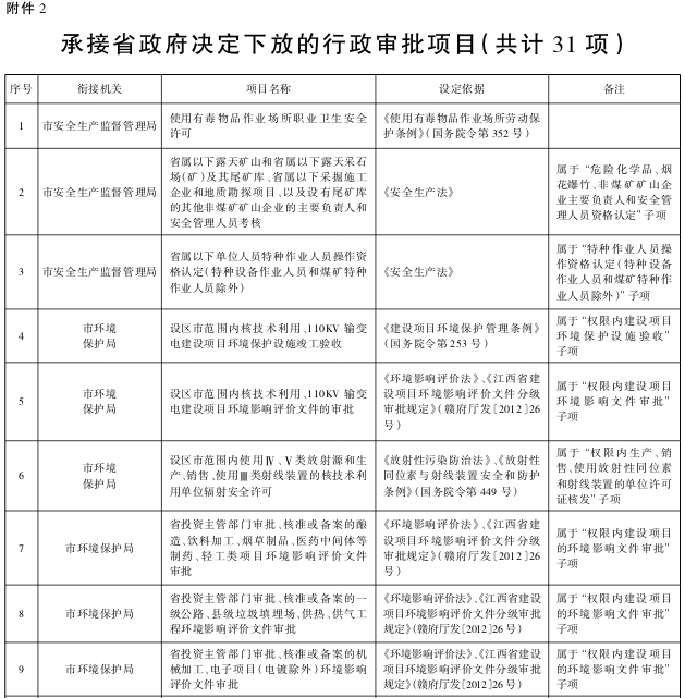 2.承接省政府決定下放的行政審批項目(共計31項)