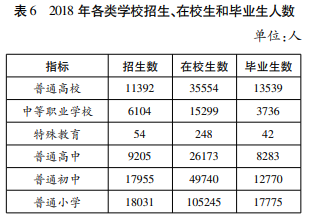 全年全市普通高校在校生3.56萬人,高中在校生2.62萬人,初中在校生4.97萬人,小學在校生10.52萬人。中等職業學校在校生1.53萬人。特殊教育在校生248人。幼兒園358所,在園幼兒4.79萬人。各類民辦學校(不含幼兒園)14所,在校學生2.6萬人,其中獨立設置民辦高校3所。高中階段毛入學率91.5%,提高0.5個百分點;初中適齡人口入學率100%;小學適齡兒童入學率100%,學前教育毛入園率89.7%。