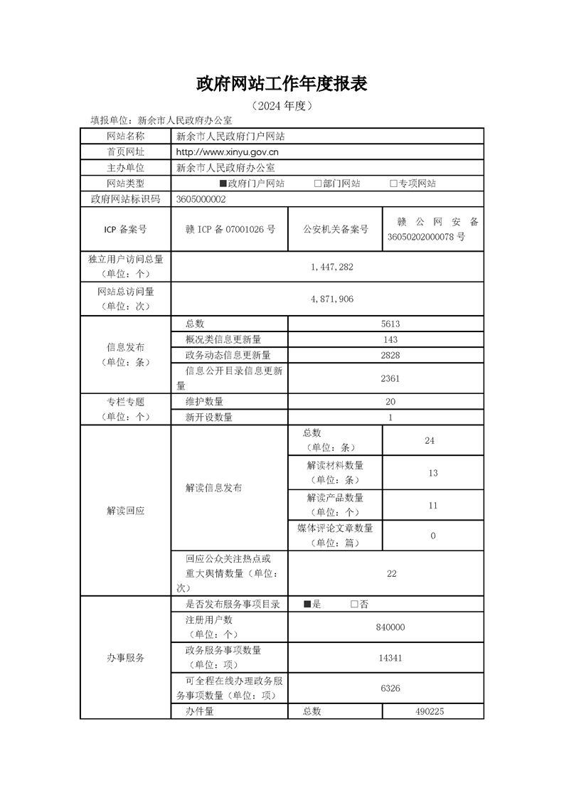 2024年新余市人民政府網站工作年度報表