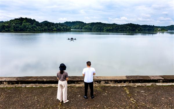 “保護水源就是保護生命。”為確保汛期飲用水水源地環境安全,5月27日,仙女湖生態環境保護綜合執法大隊聯合仙女湖區生態環境局,利用無人機監控仙女湖飲用水水源地核心管控點——第三水廠取水口水環境情況。圖為工作人員操作無人機巡察水環境。